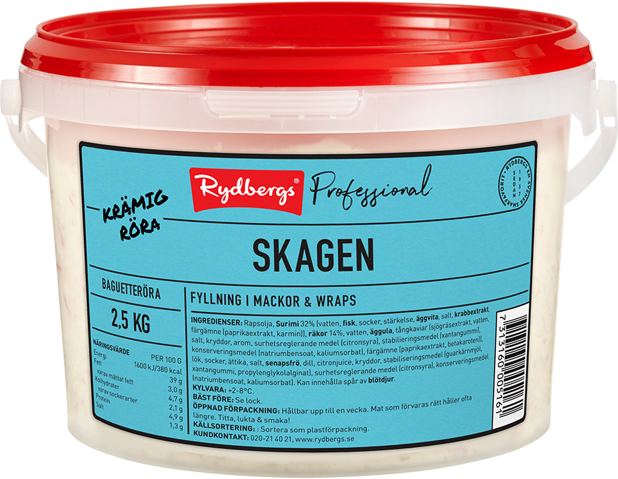En smakrik skagenröra gjort på vår fina majonnäs med räkor, rom och dill. God som fyllning i baguetter, toast skagen, smörgåstårta eller snittar. Tillagas i Sverige.