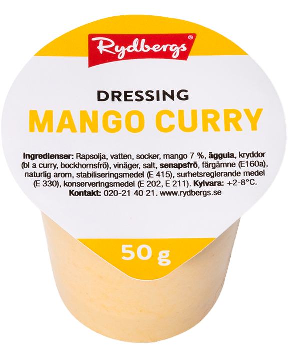 En smakrik dressing med sötma från mango och kryddig currysmak. Säljs i 25st x 50g dippförpackningar.